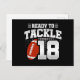 Este divertido design de aniversário de futebol é perfeito para uma festa de aniversário de 18 anos com tema de futebol para celebrar os 18 anos de idade! Também é ótimo para uma festa de aniversário de casamento de 18 anos para casais que celebram seu 18º aniversário juntos. Apresenta citação "Pronto para Enfrentar 18" com gráfico de futebol. Perfeito para qualquer um que ama futebol!