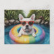 Cartão Postal Engraçado Bulldog Francês Flutuando em um Pond