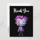 Obrigado postal com uma bela ilustração. Monstro de Frankenstein com cabelo rosa e roxo e um terno e gravata.