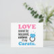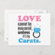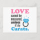 Um postal engraçado com a legenda "O amor não pode ser medido, a menos que seja por Carats." com um ícone de um anel de diamante brilhante. A citação humorística é uma escavação estereotipada sobre as senhoras amam por diamantes e usam caratos como medida de amor. No entanto, se você ama tanto alguém, você vai querer propor a ela um anel de noivado e se casar. Excelente para garotas com senso de humor! Esquema simples de cor rosa, azul e preto para mostrar a mensagem. E se você lê de longe, resume-se a Carrinhos de Amor!