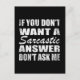 Se você gosta de citações sarcásticas engraçadas ou designs humorísticos excelentes então esse slogan original " Se você não quer uma resposta sarcástica, não me pergunte " é para você. É um presente excelente para sua família, amigos ou para você mesmo! Esta design é ideal para quem ama sarcasmo e humor. Se você gosta dessa citação engraçada, veja trabalhos de arte mais parecidos na loja Omitay. Fique seguro e obrigado você por apoiar um artista local.