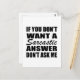 Se você gosta de citações sarcásticas engraçadas ou designs humorísticos excelentes então esse slogan original " Se você não quer uma resposta sarcástica, não me pergunte " é para você. É um presente excelente para sua família, amigos ou para você mesmo! Esta design é ideal para quem ama sarcasmo e humor. Se você gosta dessa citação engraçada, veja trabalhos de arte mais parecidos na loja Omitay. Fique seguro e obrigado você por apoiar um artista local.