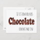 Este cartão postal engraçado vai mantê-los sorrindo com seu design único. As palavras dizem, "Se envolve Chocolate eu estou dentro".