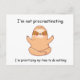 Este design de cartão apresenta uma ilustração kawaii deliciosa e divertida de uma preguiça sentada de pernas cruzadas em uma pose de yoga com uma expressão de conteúdo em seu rosto. A mensagem humorística "Não sou procrastinante, estou priorizando meu tempo para nada" é escrita em tipografia ousada e brincalhona que complementa a estética kawaii da ilustração. O texto pretende transmitir uma sensação de autoconsciência e humor sobre as alegrias de fazer uma pausa e de ceder a um tão necessário tempo de relaxamento.