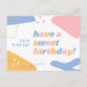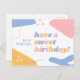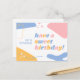 Cartão de Aniversário do Pastel Ativo, cor-de-rosa azul e Abstrato amarelo