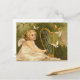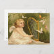 Um trabalho de arte de anjo vintage com um anjo tocando um instrumento musical e observando borboletas.