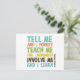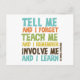 A citação de Benjamin Franklin diz "Diga-me e eu esqueço. Ensine-me e lembro-me. Envolva-me e eu aprendamos."! Esta incrível mensagem inspiradora está disponível em texto multicolorido sobre T-shirts, capuzes, sacos para totes, ímãs, canecas, correntes-chave, botões, garrafas de água e muitos outros itens excelentes para qualquer um que valorize a educação!