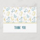 Simples cartão postal de agradecimento científico para uso pessoal ou empresarial relacionado à ciência. Atrai biologia, química, física, medicina ou qualquer outra área científica. O cartão postal tem um padrão de equipamento de laboratório de pesquisa, como tubos de ensaio, frascos e jarros de vidro em belas cores amarelo e azul. Para complementar o padrão, há algumas moléculas em cores cinza. Projetado por Patricia Alvarez.