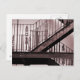Um cartão postal com uma fotografia digital telefotográfica quente e tônica de uma enigmática fuga vitoriana de ferro em formas brutas fotografada no Centro da Cidade de Cardiff. Talvez lembrar o filme noir, espionagem e pilotos do crime. Parece antecipar algum tipo de drama.