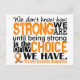 "Não sabemos quão fortes somos até sermos fortes é a única escolha que temos" (autor desconhecido). Compartilhe esse sentimento de capacitação ao mesmo tempo que defende a conscientização da esclerose múltipla com nossa linha de t-shirts, roupa e mercadorias inspiradoras, com várias fontes de texto e uma faixa laranja de suporte para esclerose múltipla. Ideia perfeita para qualquer guerreiro ou sobrevivente da esclerose múltipla!