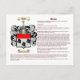 Tudo em cima e dentro a Casaco de armas tem um significado que inclui as cores. O texto inclui a descrição do Casaco de Armas, Crest (se houver), do Motto Familiar (se houver), a origem do nome, o significado do nome e o significado de cada carga e cor. Você não só tem um impressão do seu "Nome da Família Casaco de Armas", como também tem o significado de tudo nele. Como referência, utilizamos "O General Armorial de Rietstap", "Enciclopédia de Heraldry", "Livro de Crests de Fairbairn", "O Livro de Crestes Familiares", "O Armário Geral de Inglaterra, Escócia, Irlanda e País de Gales", "HPS Surnames". Se houver um Motto Crest e/ou Family, nós o adicionaremos. O nosso objetivo é ser tão preciso quanto possível.