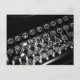Um design com uma rica e contrastante foto em preto e branco de um teclado de máquina de escrever vintage com teclas bem vestidas.