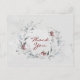Lindo cartão postal de agradecimento com citação inspiradora mostra uma grinalda de inverno branca com bagas vermelhas e folhas prateadas. Apresenta o versículo bíblico Filipenses 1:3, "Dou graças ao meu Deus sempre que me lembro de vocês." Linda mensagem de agradecimento para o Natal e a temporada de inverno.~