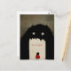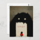 Este design fofo apresenta uma pequena criança vestida de vermelho olhando para uma porta em uma sala escura. A escuridão, o monstro, espera a criança com a boca aberta. O texto padrão "não tenha medo" pode ser personalizado.