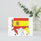 Três jogadores de futebol jogam em frente à bandeira espanhola. A Espanha do nome do país está do lado