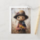 Cartão Postal Espantalho Whimetizado Segurando Girassóis