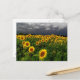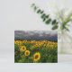 Cartão Postal Esperando, campo de girassol, nuvens de tempestade