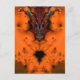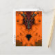 Este cartão postal apresenta um desenho fractal abstrato de um espírito vodu em tons de vermelho, preto, verde e azul. Seus chifres são azuis e ele está cercado por uma brilhante nuvem gasosa laranja.