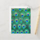 Array de penas de pavão impressionantes em tons de lacaio, azul, verde, aqua.