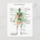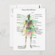 Cartão-postal mostrando um esqueleto masculino humano com os ossos rotulados