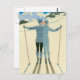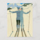 Trabalho de arte de Vintage em azul, preto e bronzeado mostrando um casal vestindo os esquis beijando