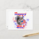 Celebrar o dia 4 de julho com um esquilo fofo segurando uma bandeira e as palavras vermelhas, brancas e azuis que dizem Feliz 4º!