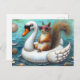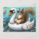 Cartão Postal Esquilo bonito em um Swan Floatie