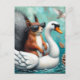 Cartão Postal Esquilo Engraçado em um Cisne Inflável