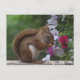 Cartão Postal Esquilo Vermelho com Petunias