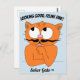 "ESTÁ BEM, FELINE BEM!" Cartão-postal de gato de bigode bonito. Este cartão-postal mostra a imagem do gato bigode do cartoon Señor Gato numa pose atenciosa com as palavras "PARECE BOM, FELINE FINE acima! A cor de fundo é azul.