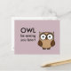Coruja de cartoon bonita faz um cartão-postal legal. Apresentando o texto "Owl vai te ver mais tarde".