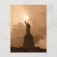 Fotografia da Estátua da Liberdade em tons Sepia com o sol por trás