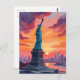 Cartão Postal Estátua da Liberdade NYC Skyline Sunset Watercolor