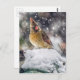 Um cardeal fêmea na neve parece estar a vigiar o outro pássaro.
