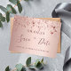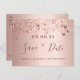 Um cartão "Salve a data" feminino e glamouroso para um aniversário de 21 anos com 21 anos. Um rosa feminino, rosa dourado falso, fundo metálico com aspecto decorado com estrelas cintilantes rosa douradas. Modelos para uma data e seu texto. Letras rosa escuras de cor dourada. O texto: Salvar a Data é gravado com um script de estilo com letra de tendência grande. Fundo: rosa dourado. Modelos para os detalhes da sua festa. Texto preto.