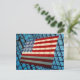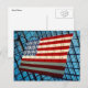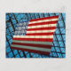Cartão postal da bandeira das Estrelas e Stripes dos EUA pendurada na Biblioteca e Museu Presidenciais John F. Kennedy, Boston, MÃES.