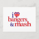 Eu adoro Bangers e Mash shirts e equipamentos. Legal, engraçada roupa e roupa. Camisetas, chapéus, cartas e botões de Bangers. Roupas britânicas únicas para crianças e adultos. Legal Bangers e camisetas Mash.