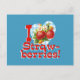 Uma imagem retrô doce que diz "Eu coração morangos".