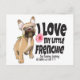 Cartão Postal Eu adoro o meu pequeno francês - Buldogue francês