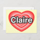 Cartão Postal Eu amo a Claire. Eu te amo Claire. Coração
