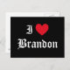 Um design de coração "I Love Brandon" com uma letra de estilo caligráfico. Este medicamento pode ser encontrado com um coração cor-de-rosa ou vermelho. Personalize para personalizar a palavra.