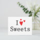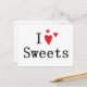 Cartão postal Eu Amo Doces. Cartão postal personalizável e fofo para todos os amantes de doces.