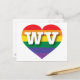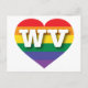 Este cartão-postal apresenta um coração com orgulho arco-íris sobreposto pelas letras maiúsculas brancas e negritas WV, a abreviação oficial para Virgínia Ocidental, o estado montanhoso. Mostre suas verdadeiras cores, apoie a igualdade matrimonial e celebre o orgulho gay.