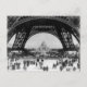 Foto do vintage da torre Eiffel em Paris do início do século XX. A perspectiva é próxima à base da torre. foto preto e branco.