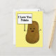 Envie a alguém uma mensagem com este doce cartão postal Eu Amo Você, Batata. Uma adorável batata marrom de desenho animado com olhinhos pretos e um grande sorriso feliz. Ele está segurando um sinal que diz Eu Amo Você Batata, este é um modelo e pode ser usado para alterar o estilo da fonte, cor e tamanho. Ou até mesmo mudar as palavras para sua própria mensagem.