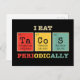 Eu como tacos A coleção periódica é perfeita para amantes de taco e entusiastas da ciência! Estes designs divertidos combinam elementos químicos com uma paixão por tacos deliciosos. Quer você esteja procurando uma camiseta para Taco Terça-feira, um saco de tote para carregar seus petiscos favoritos, ou uma caneca para mostrar seu humor culinário, esta coleção mistura charme geeky com diversão deliciosa. Compartilhe o seu amor pelos tacos e pela ciência em estilo!