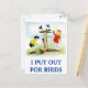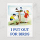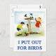 Uma imagem balbuciosa de crianças alimentando pássaros, e até desfrutando da companhia de um esquilo faminto. A legenda diz que eu coloquei para as aves. Um cartão bonito para amantes de pássaros que saíram.
