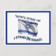 Não fique apenas com Israel; fique em Israel. Possui uma bandeira israelense. O texto em inglês abaixo da bandeira diz, EU FICO EM ISRAEL." O texto hebraico acima da bandeira diz, "Ani omedet b'Yisrael" (א נ ע ו מ ד ת י ב י ש ר א ל). Venha para casa, faça aliyah. Junte-se àqueles que eram nasceres aqui e àqueles que vieram para casa. Não há mais maneira de mostrar o vosso apoio a Israel do que de se tornarem cidadãos e viverem aqui.