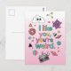 Envie um sorriso com este vibrante e engraçado cartão postal "Eu gosto de você, você é estranho"! Com um design fofo e retrô com uma nuvem feliz, monstro roxo, formas geométricas coloridas, planetas, um donut e um toca-fitas antigo. Perfeito para melhores amigos, cônjuges ou qualquer pessoa que abrace seu lado estranho. Uma ótima maneira de celebrar amizades únicas, aniversários ou apenas para enviar uma saudação inesperada.