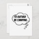 Eu preferencialmente acampar. Bolha de cartoon em preto e branco com citação engraçada. Cartões postais personalizados. Um design para pessoas que adoram acampar.